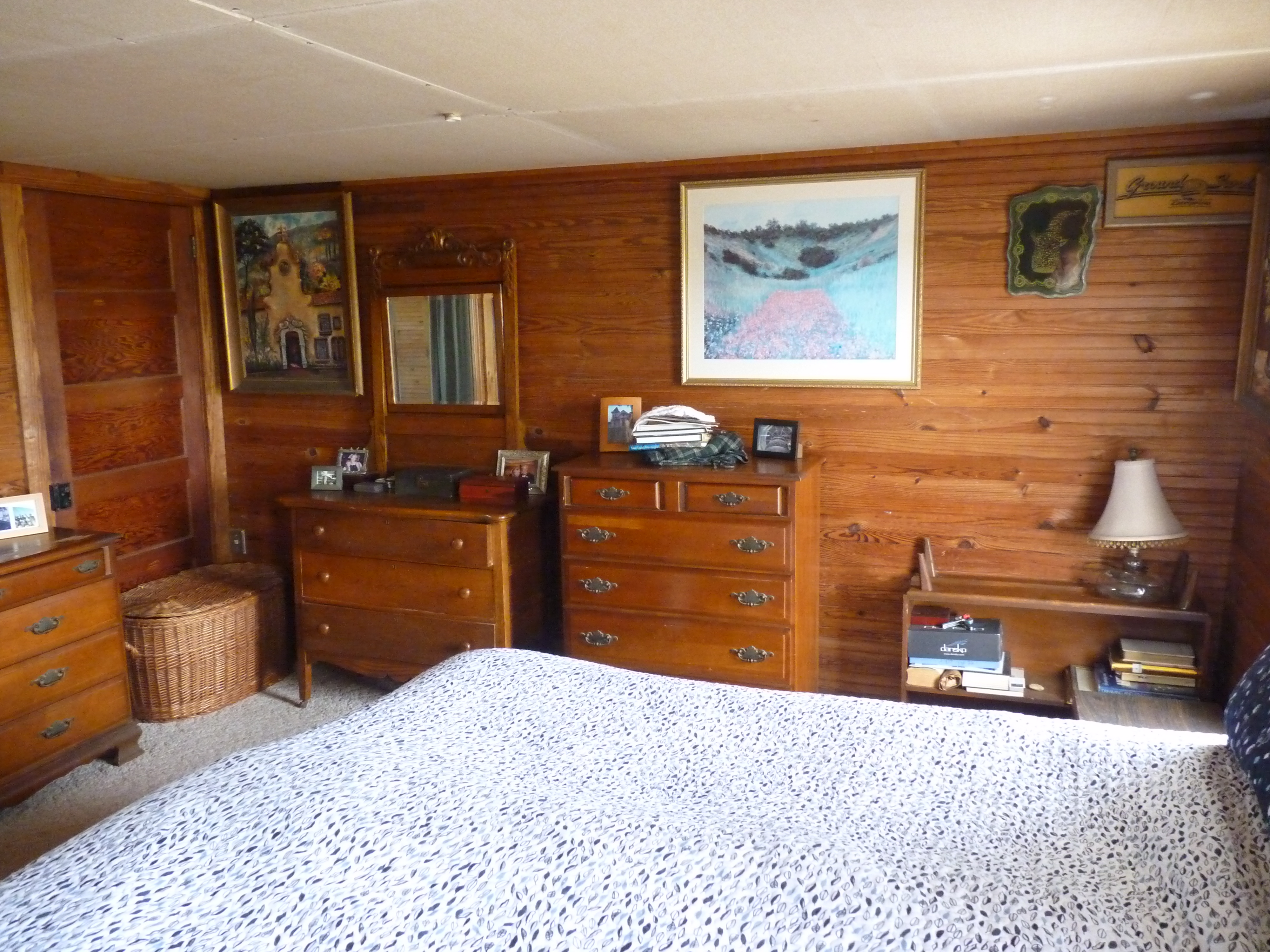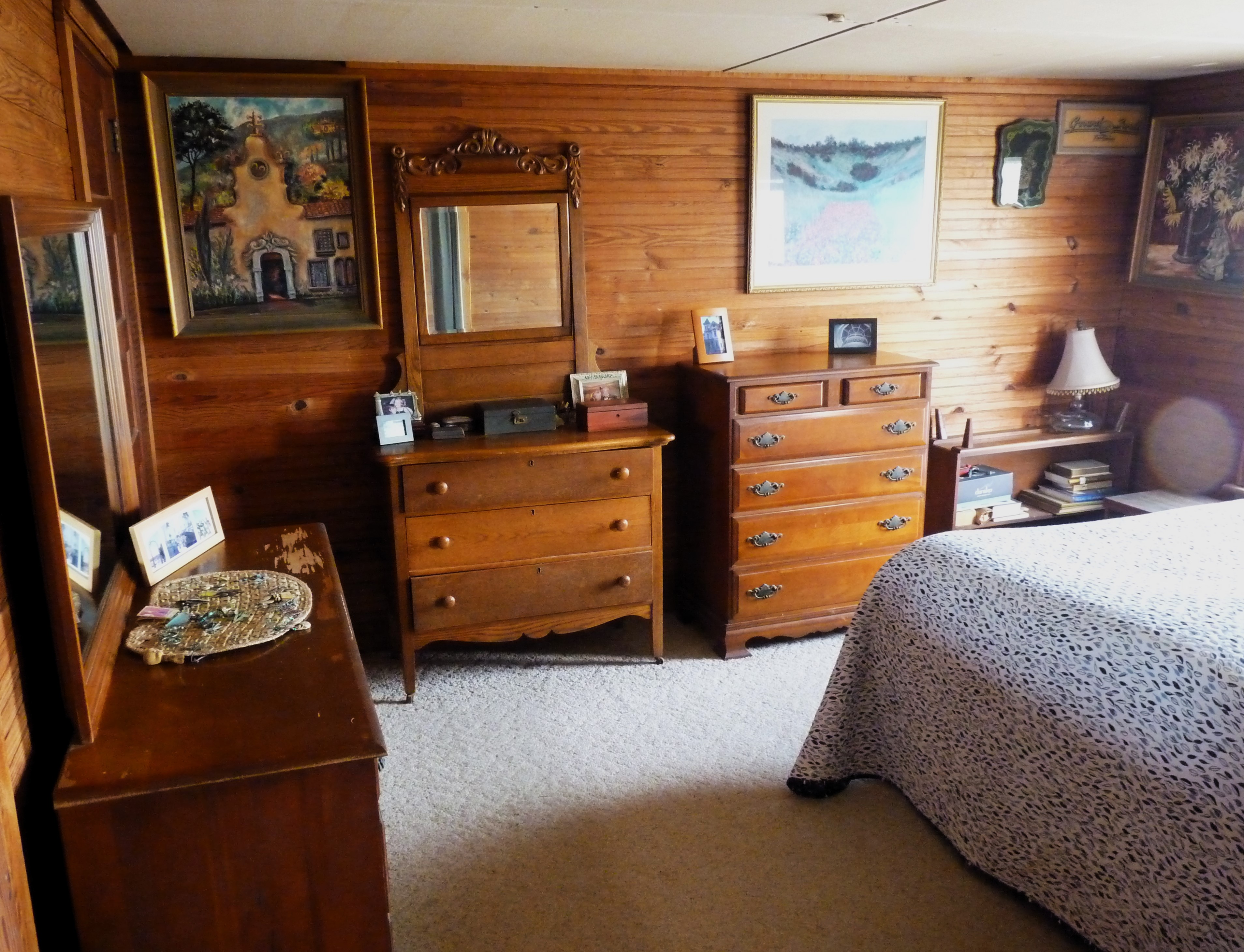 The interior of the home has the original beaded tongue and groove wood paneling.